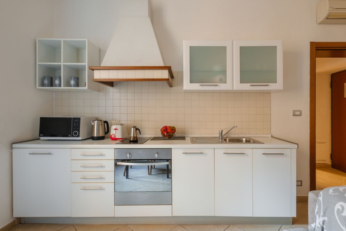 L' appartamento si compone di una camera matrimoniale (o doppia, a seconda delle vostre esigenze), una cucina/zona giorno completamente attrezzata con divano-letto, e un bagno con lavatrice.
