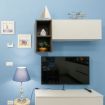 La casa propone un simpatico richiamo al mare, con una fantasia che ricorda le sfumature del Mediterraneo.